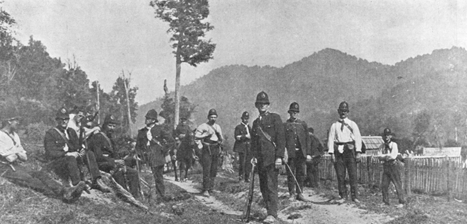 Evidence suggests that the “rifles” mentioned by Cowan were actually New Zealand carbines. In a photo of the police column heading to Rua Kēnana’s settlement, several officers at the front are clearly carrying short carbines—not Long Toms, which would have been much longer. The visible pistol grip rules out the Martini-Enfield, and the shoulder slings confirm they weren’t cavalry models. Another photo from the same event shows police with the same short, sling-fitted carbines—almost certainly New Zealand Carbines.